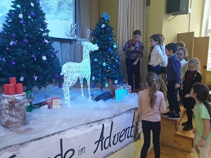 2 декабря в гимназии начались первые рождественские мероприятия, и ученики первых классов получили свои подарки из общего школьного адвентского календаря, в котором все подарки сделаны своими руками.